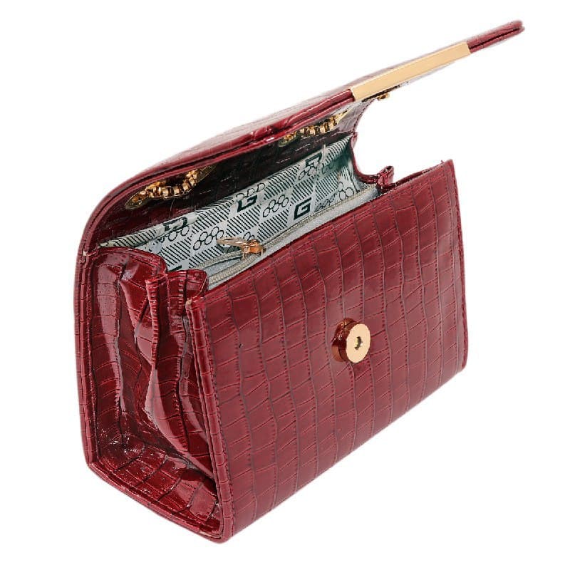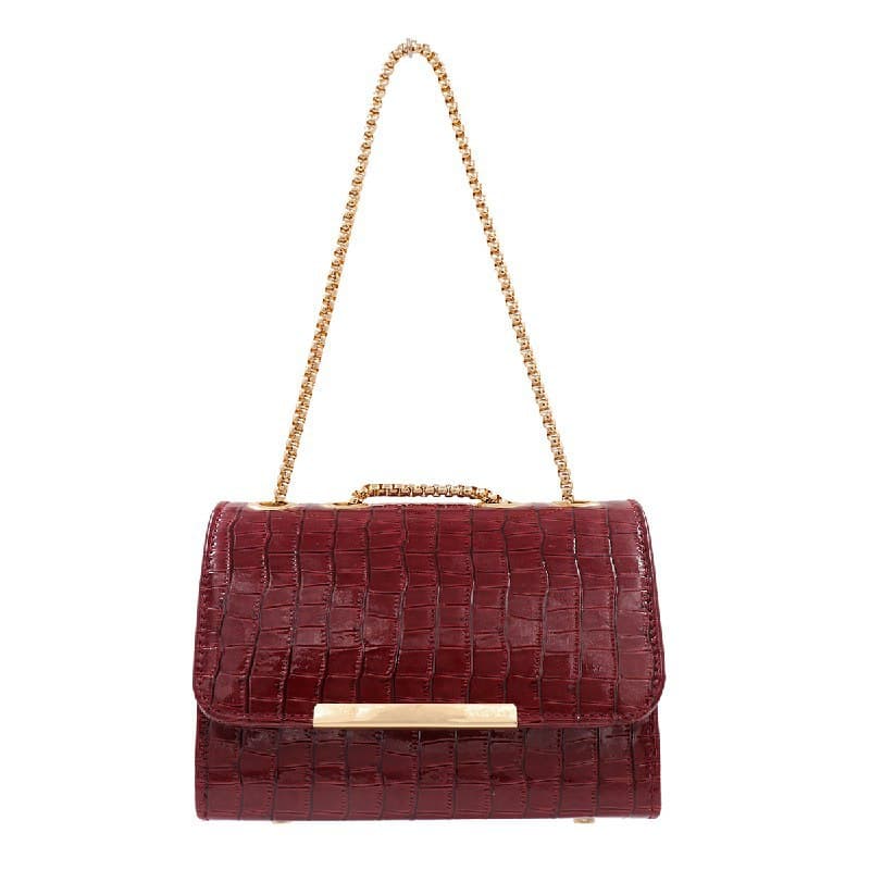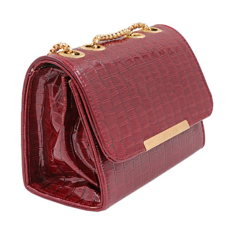 • SPECIFICATIONS : This synthetic leather shiny bag has one compartment and 1 chained pocket. The size of the bag is 22cm x 15cm x 9cm.
