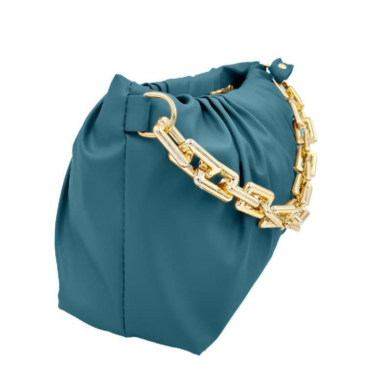 • SPECIFICATIONS : This synthetic leather shiny bag has one compartment and 1 chained pocket. The size of the bag is 22cm x 15cm x 9cm.