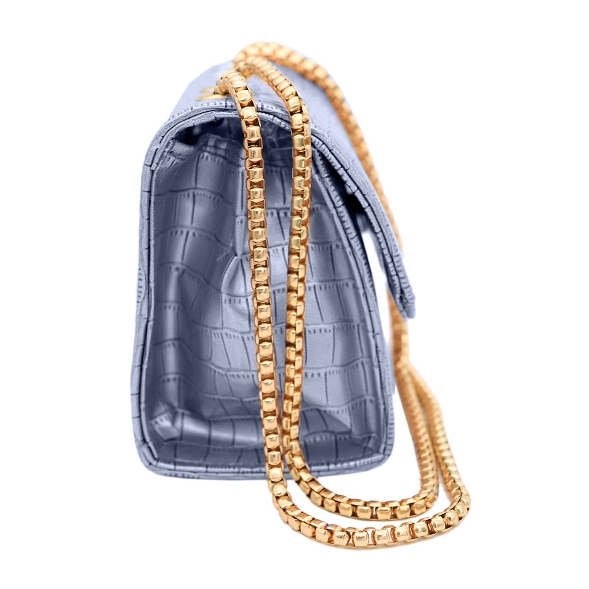 • SPECIFICATIONS : This synthetic leather shiny bag has one compartment and 1 chained pocket. The size of the bag is 22cm x 15cm x 9cm.