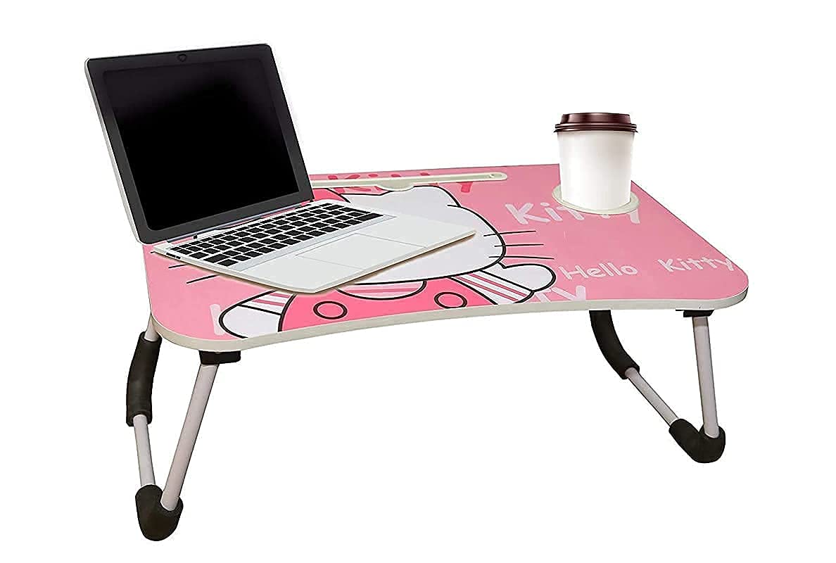Study Table Portable Multifunction Laptop Table Lapdesk for Children Bed Foldabe Table Work Office Home with Tablet Slot & Cup Holder Bed Study Table (Hello Kitty)